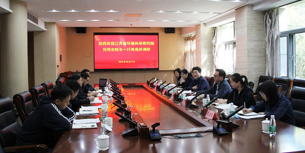 10月17日,江苏省环境科学研究院院长刘伟京一行来我所调研机构改革、重点实验室建设有关情况,徐海根副所长主持接待。