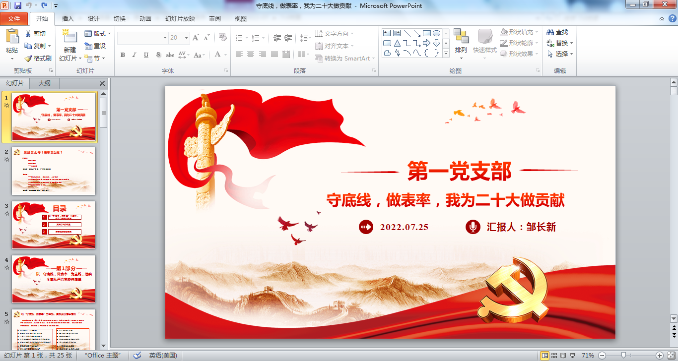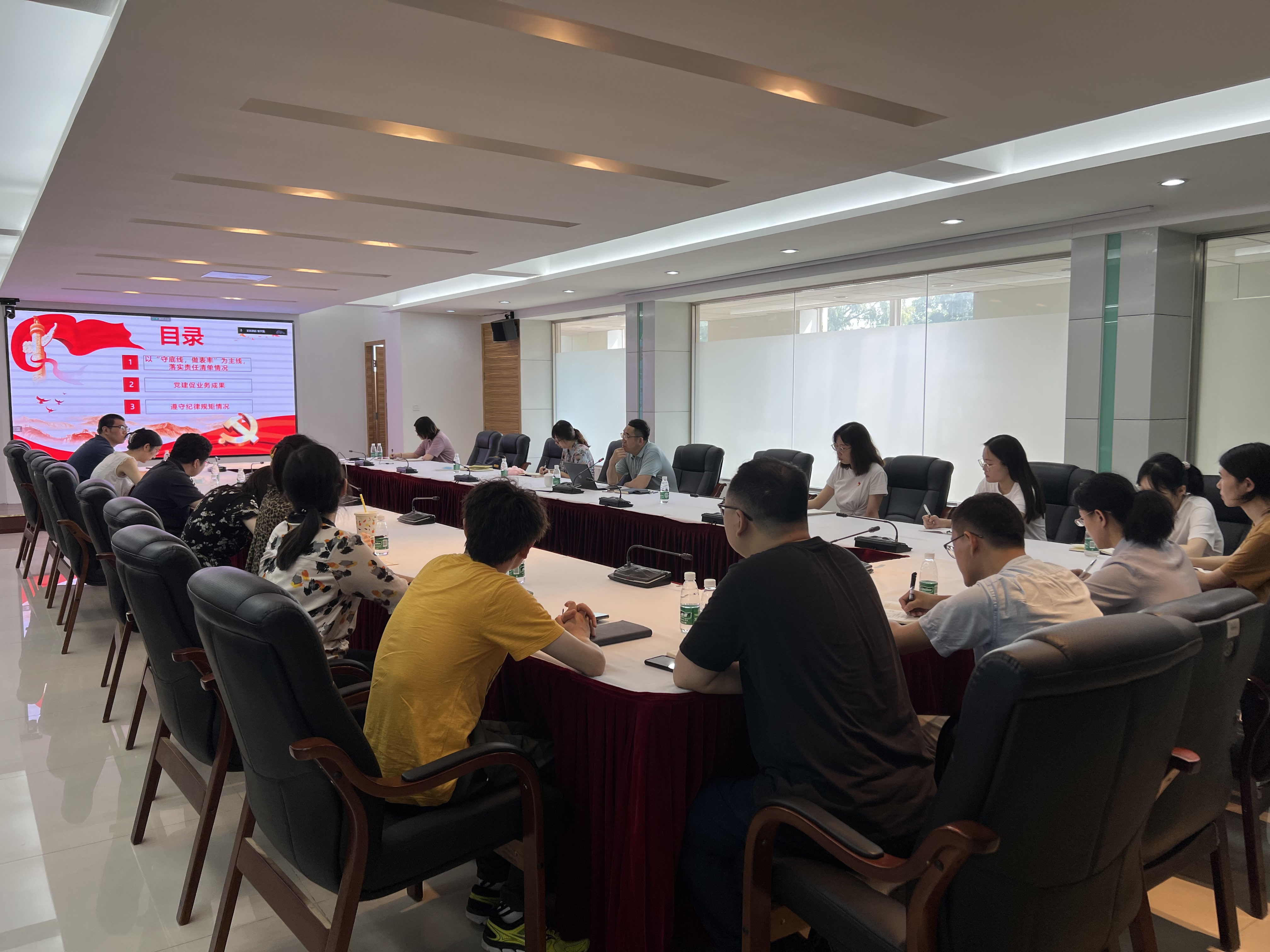 2022年7月25日,第一党支部书记邹长新同志以《守底线做表率,我为二十大作贡献》为题,为第一党支部全体党员讲授专题党课。第一党支部全体党员和部分非党员同志参加会议。