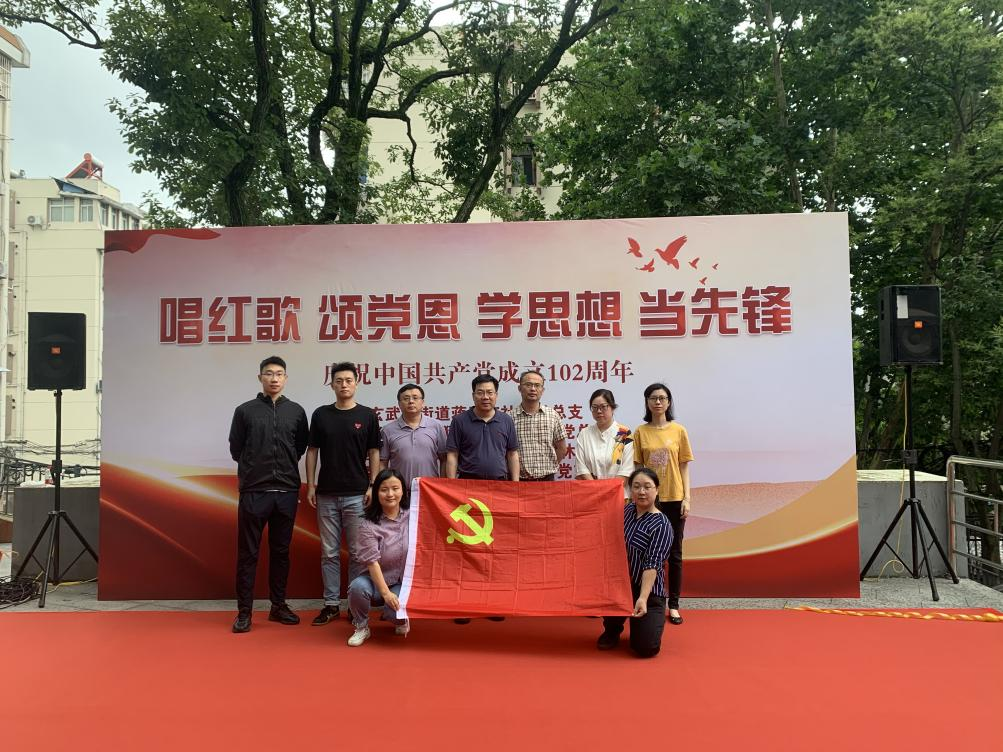 布置“‘七一’广场文艺汇演”活动现场。工程中心志愿者们摆放活动桌椅,整理活动资料,协助蒋王庙社区工作人员对活动会场进行彻底的打扫和精心布置。