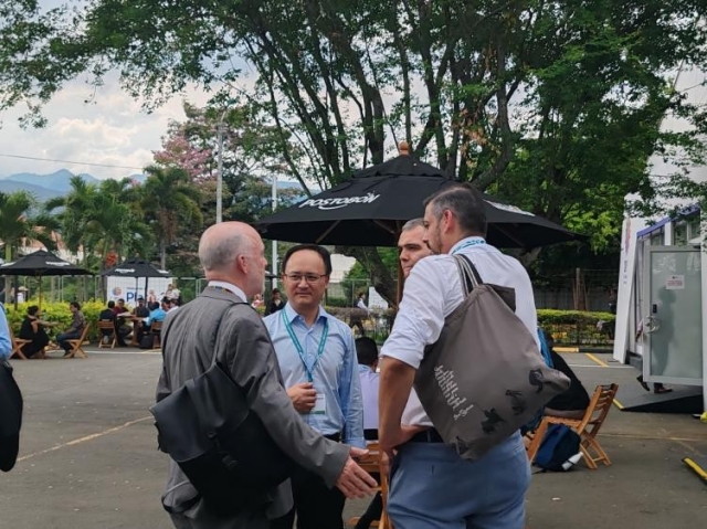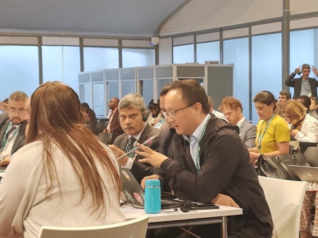 赵富伟在哥伦比亚会场外与欧盟、巴西代表讨论
