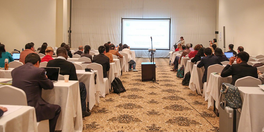 2018年11月17日-29日,联合国《生物多样性公约》第十四次缔约方大会在埃及沙姆沙伊赫召开。大会期间,我所于11月26日举办了“中国履行《生物多样性公约》第六次国家报告边会”。有关缔约方、联合国环境暑、《公约》秘书处和国际非政府组织等方面代表近百人参加了此次活动。可持续发展国际研究所(IISD)进行了专门采访报道(http://enb.iisd.org/biodiv/cop14/side-events/26nov.html#event-2)。生态环境部自然生态保护司柏成寿副司长、联合国助理秘书长、《公约》执行秘书克里斯蒂亚娜·帕斯卡·帕尔默(Cristiana Paşca Palmer)女士出席了该边会。生态环境部环境保护对外合作中心项目官员傅钰琳女士主持会议。我所徐海根副所长、于丹丹助理研究员和傅钰琳女士分别作了主题报告。