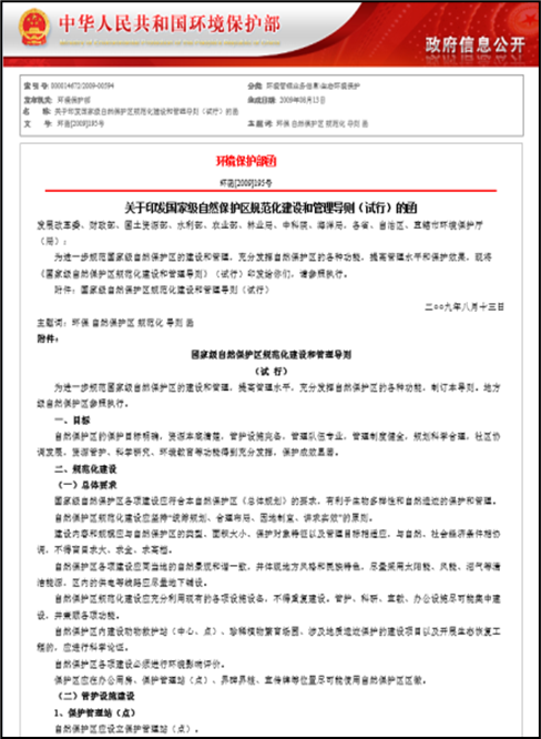 项目坚持基础理论研究与应用实践相结合的思路,形成《国家级自然保护区调整管理规定》《国家级自然保护区规范化建设和管理导则》《自然保护区综合科学考察规程》等十多个政策文件,将技术成果直接转化为环境管理所需,在“绿盾”专项行动、自然保护区评审、生态破坏问题查处等工作中得到广泛应用。相关成果获得环境保护科学技术奖二等奖。