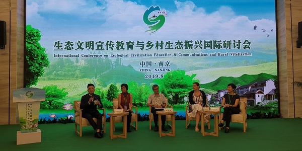 8月29-30日,首届生态文明宣传教育与乡村生态振兴国际研讨会在南京江宁美丽乡村云水涧文化展示中心正式开幕。本次研讨会由生态环境部宣传教育中心、江苏省生态环境厅、南京市江宁区人民政府、中国人民大学乡村建设中心主办,江苏省环境保护宣传教育中心、南京市江宁区生态环境局、农业农村局承办,南京市生态环境保护宣传教育中心、南京江宁旅游产业集团等单位共同协办。来自美国、日本、中国香港等国家和地区,以及国际社区支持农业CSA联盟的多位国际专家学者作主旨报告,会议规模200余人。培训班开幕式由南京市江宁区副区长焦龙主持,南京市人民政府副市长胡洪、生态环境部宣传教育中心主任贾峰、江苏省生态环境厅副厅长周富章、生态环境部土壤司调研员孔源、南京市江宁区区长严应骏分别讲话致辞。