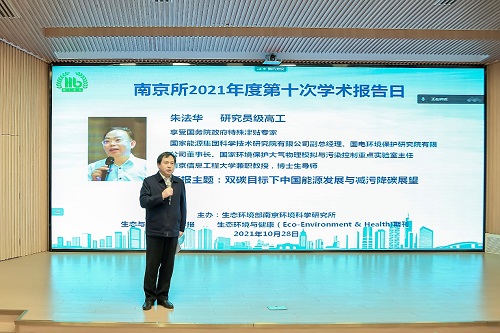 2021年10月28日,南京所举办第十次学术报告日活动,邀请国电环境保护研究院有限公司董事长、国家环境保护大气物理模拟与污染控制重点实验室主任朱法华研究员作报告。南京所赵克强所长主持本次学术活动,党委书记刘国才作总结。学术委员会委员及所内外350余名科研人员参加。