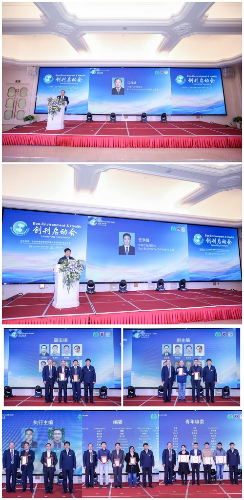随后,江桂斌院士和任洪强院士致辞,充分肯定了EEH期刊的初始成果,指出EEH期刊学术领域高度契合了服务我国生态环境研究的需求,并进一步对期刊建设提出了更高的要求,认为EEH期刊具有深远的发展前景和发展意义,并一一为期刊编委会成员颁发了聘书。