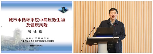南京大学环境学院张徐祥教授作“城市水循环系统中病原微生物及健康风险”主旨报告,详细说明长江水环境中致病菌的时空分布特征、城市饮用水系统中致病菌的变化特征和城市污水系统中致病菌/病毒及其风险特征等,并提出了未来研究方向。