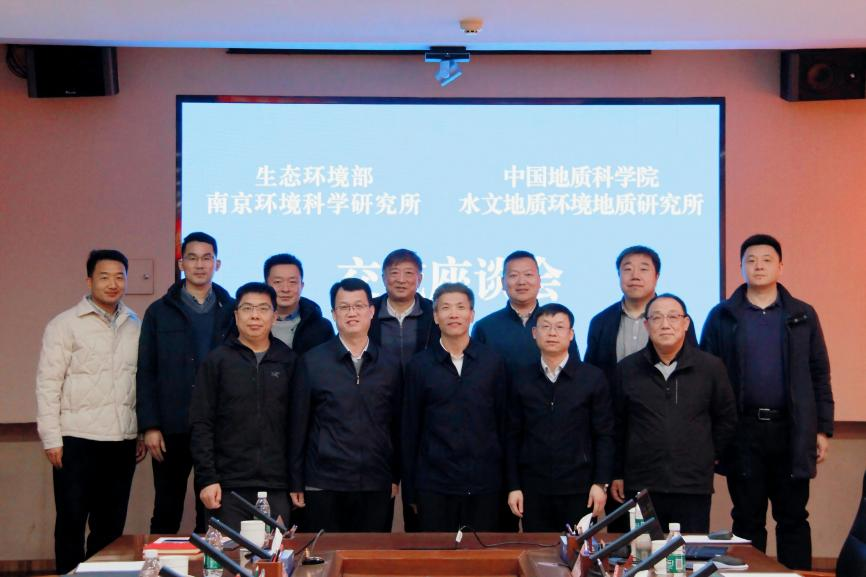 2026年1月23日,中国地质科学院水文地质环境地质研究所(以下简称“水环所”)所长黎清华率队赴生态环境部南京环境科学研究所(以下简称“南京所”)开展调研交流。双方围绕服务美丽中国建设、深入打好污染防治攻坚战等国家重大战略部署,聚焦土壤与地下水污染防治领域的关键技术攻关与重大战略需求,进行了深入研讨。双方一致认为,应进一步全面深化战略合作,共同提升对国家生态环境治理体系与治理能力现代化的科技支撑能力,并就未来合作方向达成共识。南京所所长姜华主持座谈。
